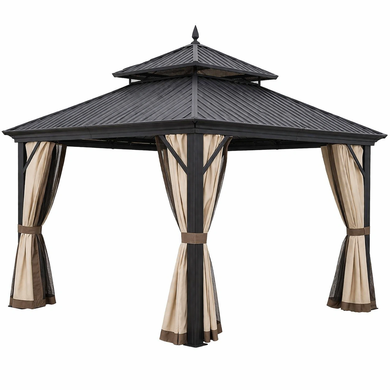 Gazebo de jardín de acero y poliéster para exterior beige y negro
