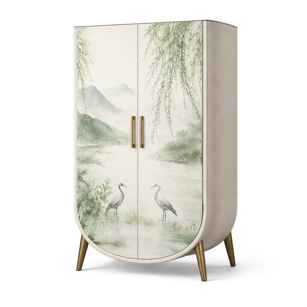 Armario de madera con impresión de grullas
